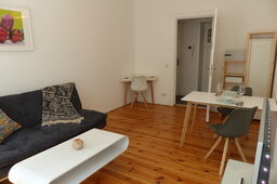 Eine schöne Altbauwohnung mit Balkon, hohen Decken und Dielen im Weitlingkiez, unweit vom Rummelsburger Ufer im grünen Bezirk Lichtenberg. Die voll ausgestattete Wohnung ist perfekt für Singles oder für ein junges Paar. Renoviert und mit viel Liebe eingerichtet ist es ein Ort, an dem man sich in der Hauptstadt zuhause fühlen kann. Das Wohnzimmer bietet neben einem Esstisch, ein großes Sofa mit TV und einen Schreibtischplatz in der Ecke. In der Wohnküche findet man alles, um Freude beim Kochen und Backen mit Freunden zu haben. Nebenan befindet sich das Schlafzimmer mit Balkon, was einen großen Kleiderschrank und zusätzlich einen Schreibtisch bietet. Das geflieste helle Bad ist mit einem WC, Waschbecken mit Spiegel und einer Duschkabine ausgestattet.
