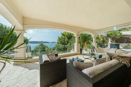 This classic style luxury property built in 2008 is truly majestic. One has a wonderful sea view from the garden area in the idyllic landscaped outdoor area. The large pool invites you to swim and also in cooler seasons you can use a 4x4m heated Jacuzzi in the covered outdoor area. Right in the entrance area on the upper floor you can enjoy the view to the sea through the large windows.